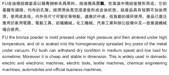 FU含油燒結軸承